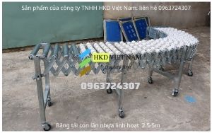 -Băng tải con lăn nhựa linh hoạt khung xếp kéo ra thung vào, uốn éo...